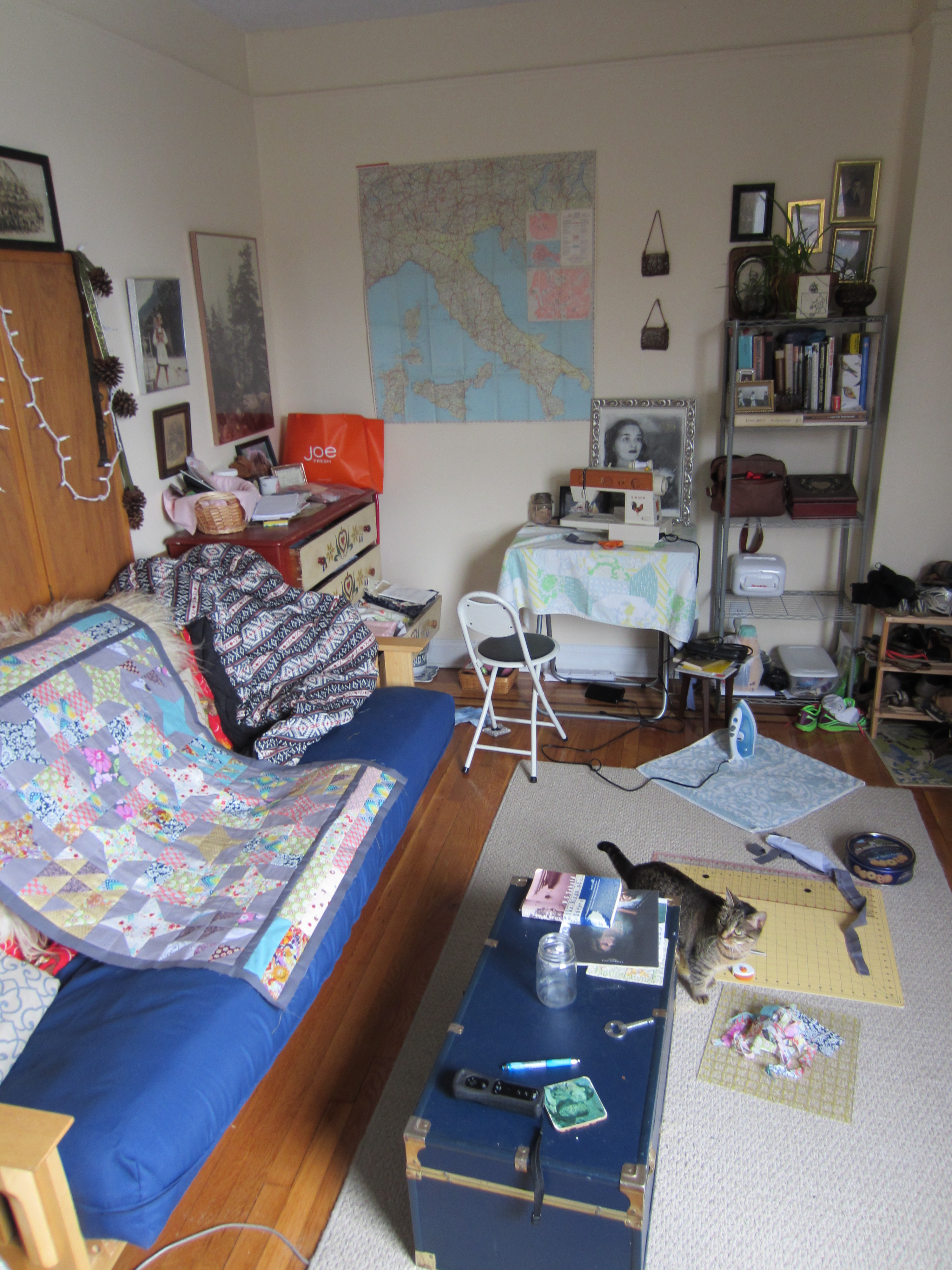 After this quilt is done, I’m not sure what to move onto next. My space at this apartment is very, very limited, so I don’t think I’ll be tackling anything intricate.